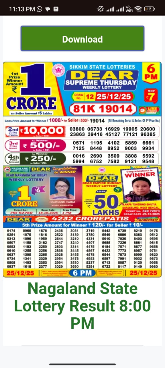 Lottery Sambad 1:00 PM result is one of the most searched lottery results in India. Kashadda updates 1:00 PM Nagaland State Lottery result as soon as the draw is declared.